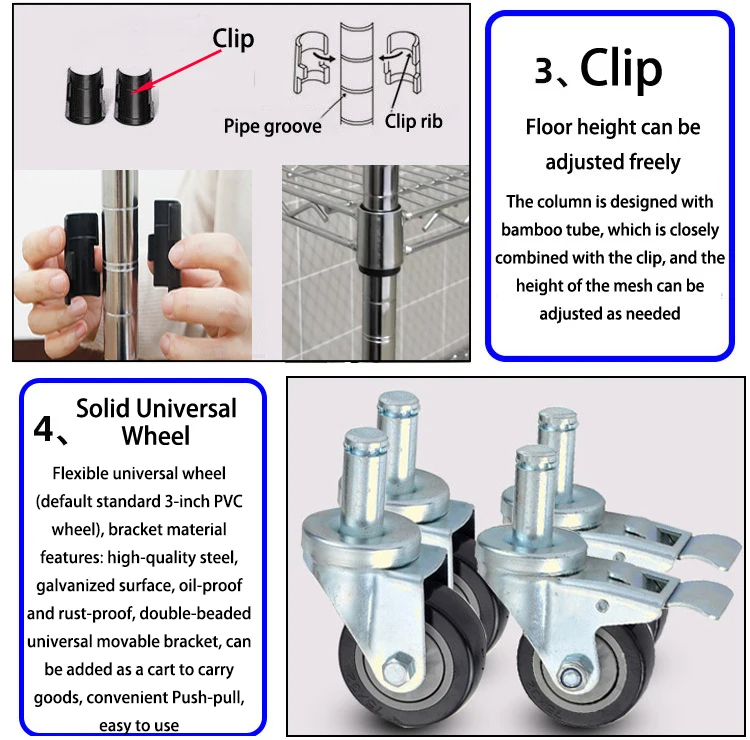 * Easy Assembly -No tools required. The standing shelf units are very easy to install. Adjustable leveling feet keep the shelf standing stable and also protect the floor from scratching.