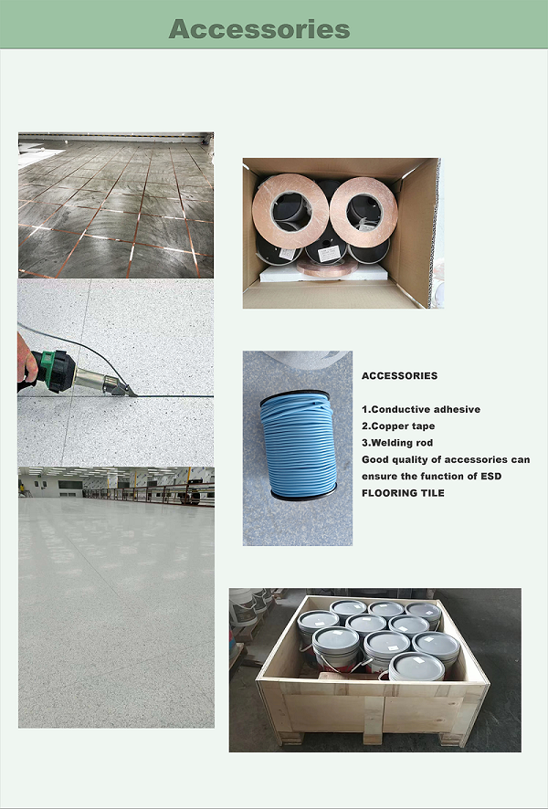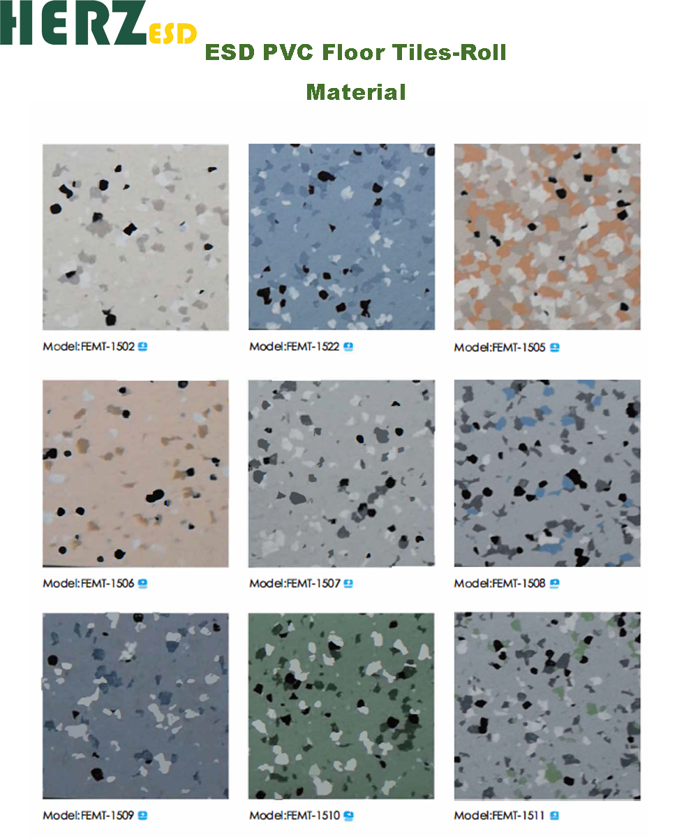 ESD vinyl flooring is widely used in clean rooms, manufacturing & assembly workshops of electronic products, hospitals, data centers & computer rooms, and other areas that require an anti-static environment. There are two kinds of ESD vinyl flooring, ESD tile and ESD sheet. Both tile and sheet are homogeneous structures, and electronic resistance can meet both conductive(10^4-10^6Ω) and static-dissipative(10^6-10^9Ω).